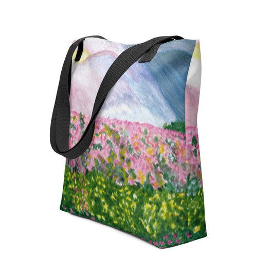 LJD Collection - Pink Wildflower Mountain - All-Over-Print Tote Bag